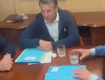Эту версию также подкрепляло то, что канцлер Германии Фридрих Мерц, сидящий рядом с Макроном, прятал предмет, напоминающий маленькую ложку или трубочку.
