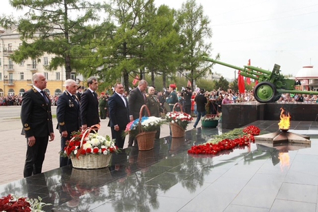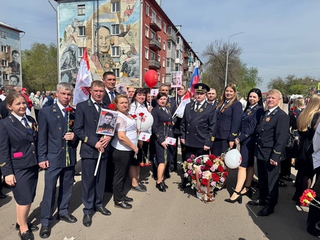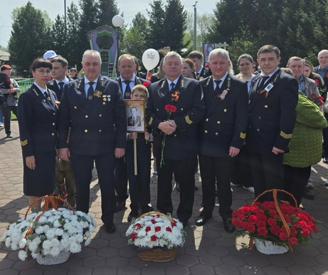 В Ленинске-Кузнецком директора Компании вместе с главой Ленинск-Кузнецкого муниципального округа Евгением Никитиным возложили цветы к мемориальному комплексу "За подвиг в бою, за доблесть в труде своим землякам – благодарные горожане", а также стали участниками городского праздничного шествия. Во главе многочисленной колонны угольщиков вместе со знаменем Победы была пронесена копия знамени 376-й Кузбасско-Псковской Краснознаменной стрелковой дивизии, хранящаяся в Музее шахтерской славы Кольчугинского рудника. В составе отдельной колонны по главной площади города прошли бойцы добровольных противопожарных и санитарных дружин предприятий "СУЭК-Кузбасс". Участниками парада и Бессмертного полка стали работники аппарата управления, шахтоуправлений имени А.Д. Рубана и "Комсомолец", шахты имени С.М. Кирова, Спецналадки, Управления дегазации и утилизации метана, Погрузочно-транспортного управления, Энергоуправления, Управления по профилактике и рекультивации, Технологической связи и машиностроительного завода "СИБ-ДАМЕЛЬ". Они пронесли портреты героических родственников, приближавших Победу на фронте и в тылу. В этот знаменательный день в Ленинске-Кузнецком горняки возложили цветы и возле Мемориалов расположенных на территории предприятий Компании.