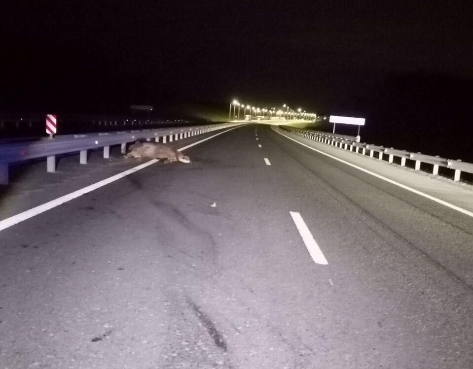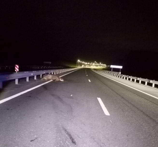 – Неустановленный водитель управляя неустановленным автомобилем совершил наезд на дикое животное (лось), после чего скрылся с места происшествия, – сказали в ГАИ.