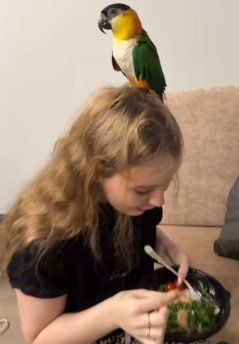 Она заверила, что птица умеет "говорить" по-человечески, но пока не продемонстрировала это.