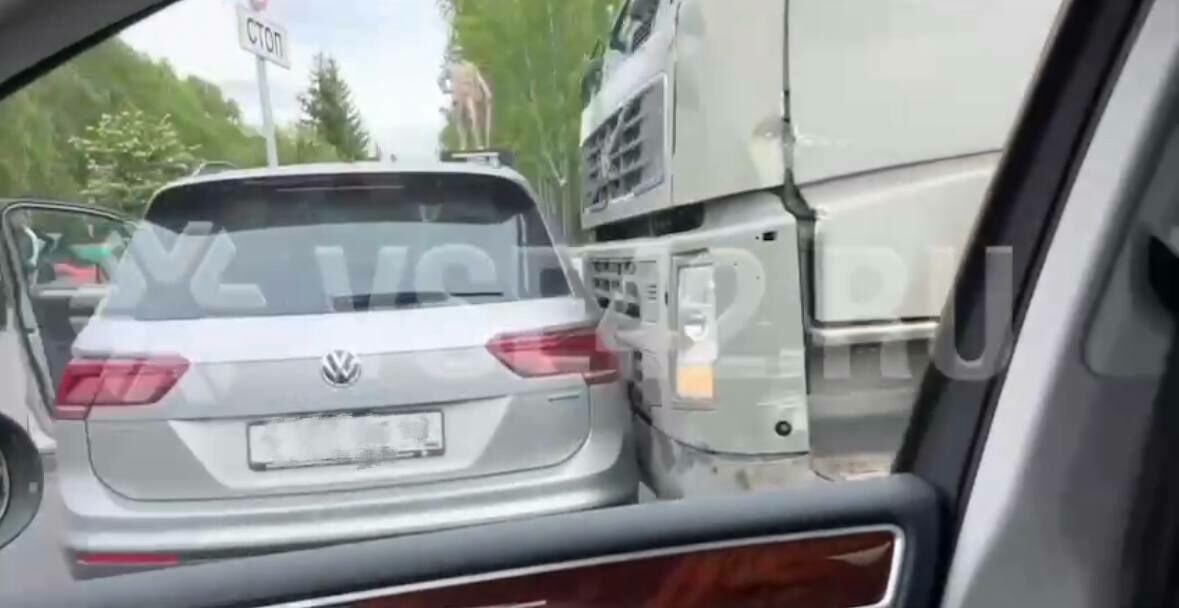 На предоставленной постоянным читателем редакции VSE42.RU видеозаписи можно увидеть, что крупногабаритное транспортное средство находится вплотную с боковой частью легковушки. Серьезных видимых повреждений на видео заметить не удалось.