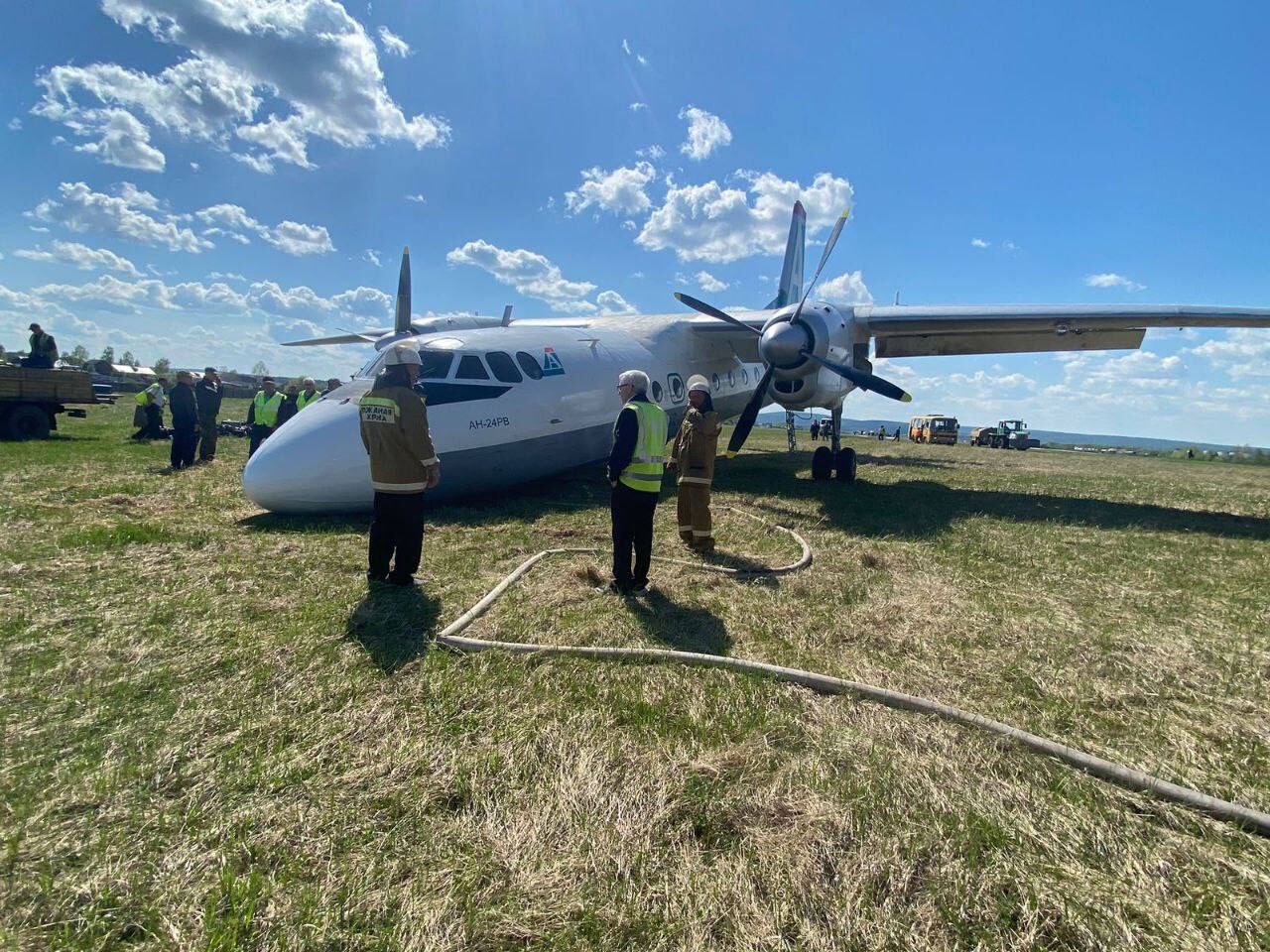 В понедельник, 26 мая, самолет Ан-24, выполнявший рейс из Иркутска в Киренск, выходил на посадку. Когда воздушное судно уже было готово к приземлению, произошла неисправность: передняя стойка шасси сложилась, из-за чего самолет прокатился по ВПП и вылетел за ее пределы.