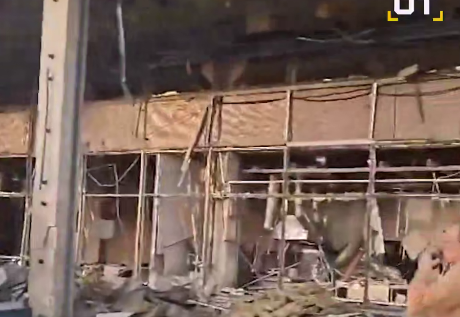 Как видно на опубликованных кадрах, в здании выбиты окна, оно частично обрушилось. Видеороликом делится Telegram-канал SHOT.