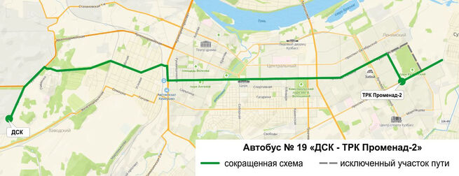 Автобус №19 "ДСК – ТРК Променад 2" с 10:00 до 16:00 поедет по проспекту Ленинградскому, объезжая перекрытый участок проспекта Комсомольского (от Ленина до Химиков).