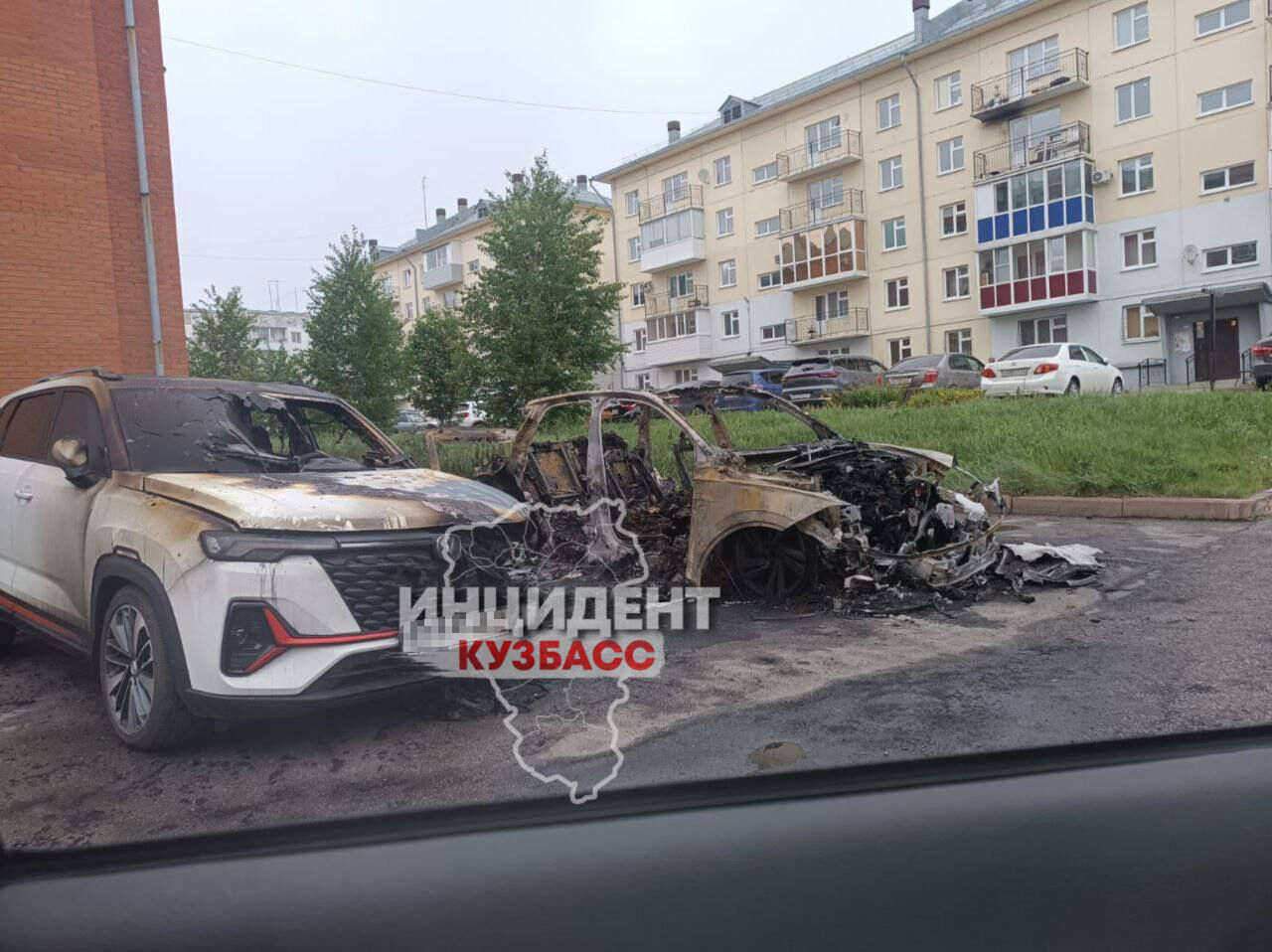 Две иномарки полностью сгорели под окнами многоэтажек в Кузбассе