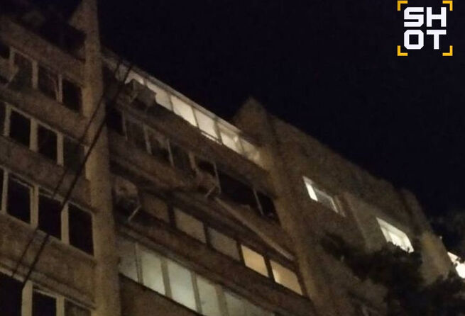 Сообщается, что обломки беспилотника попали в верхние этажи девятиэтажного дома на улице Димитрова в Курске. Из-за этого минимум две квартиры оказались повреждены. Выбиты стекла. Власти планируют в ближайшее время заняться ремонтом.