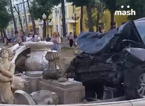 В Ступино автомобиль на высокой скорости влетел в "Римский фонтан", разрушив чашу и скульптуры.