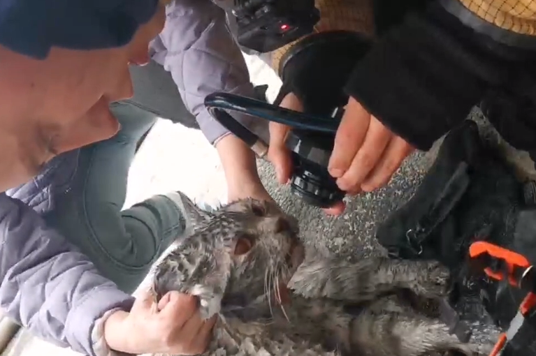 Кота вытащили на свежий воздух и приступили к реанимации. К морде животного поднесли кислородную маску и начали проводить массаж сердца. Все это время, как видно на кадрах, сотрудник МЧС переживал за четвероногого и приговаривал: "Давай, маленький" и "Дыши, друг". В итоге животное пришло в себя.