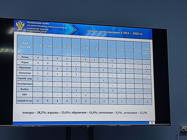 Сергей Мясников, заместитель начальника Управления по надзору в угольной промышленности (Ростехнадзор), рассказал участникам круглого стола об основных причинах смертельного травматизма в 2025 году на промышленных предприятиях: