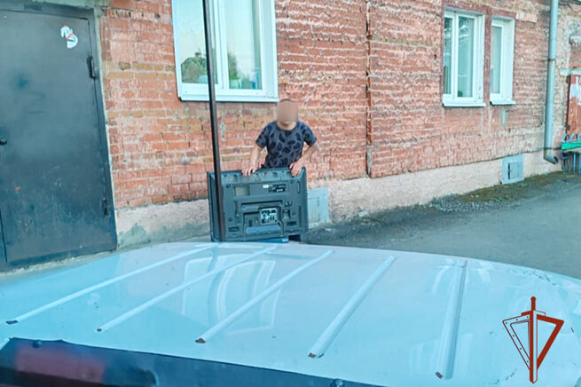 Увидевший силовиков кузбассовец с признаками алкогольного опьянения пытался убежать от них с телевизором в руках, однако его задержали.