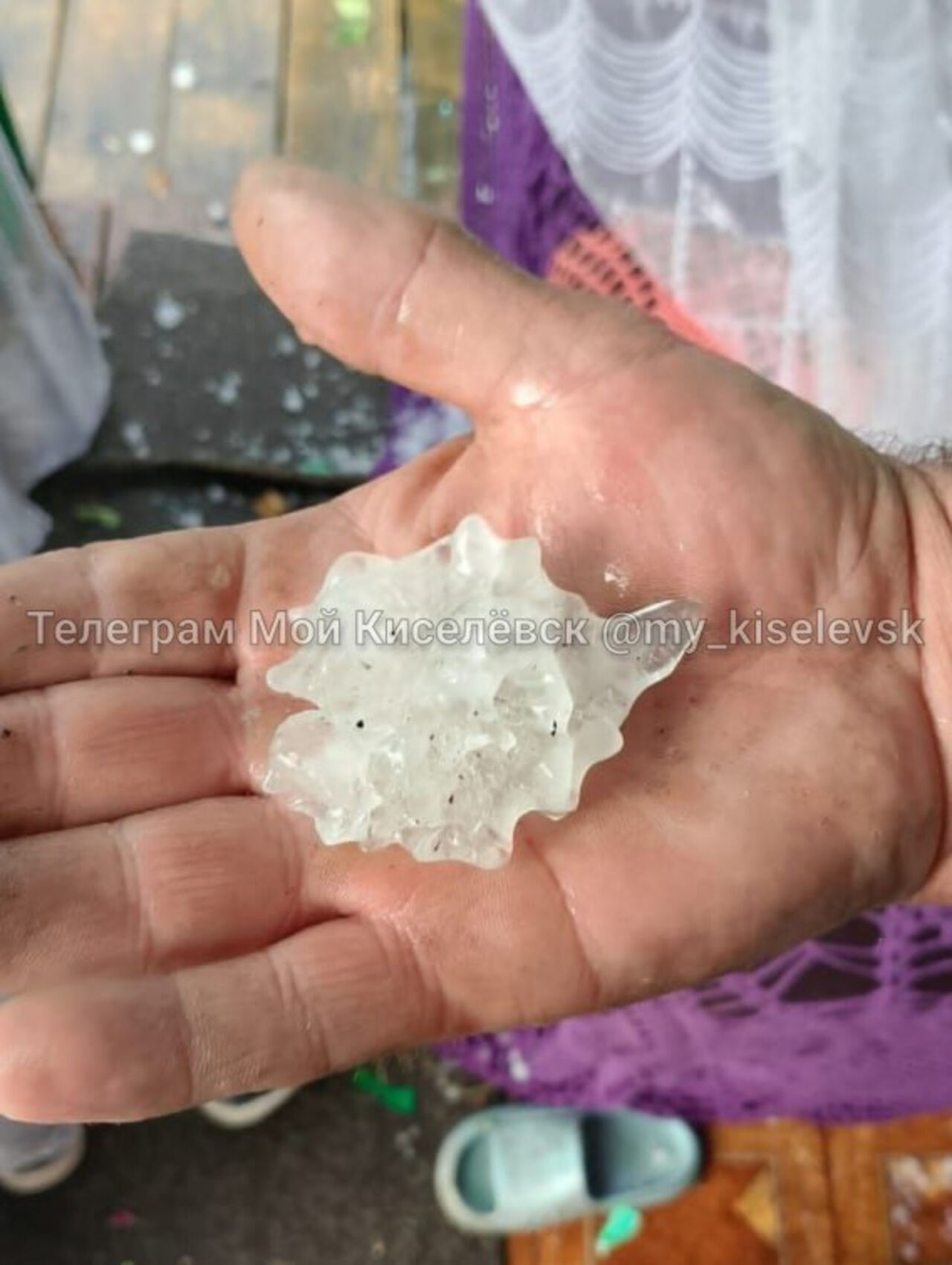 Вечером в воскресенье, 8 июня, на Прокопьевск и окрестности обрушился град размером с куриное яйцо, что обернулось разрушительными последствиями: куски небесного льда крушили автомобили, посевы. Досталось даже окнам домов, где разорваны москитные сетки.