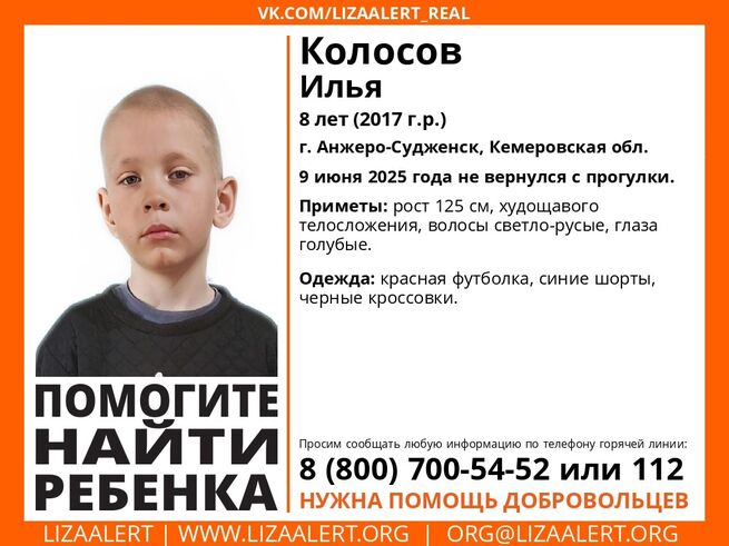 Так, волонтеры ПСО "ЛизаАлерт" поделились промежуточным отчетом о поисках пропавшего в Анжеро-Судженске первоклассника. Как рассказали поисковики, заявка о пропаже восьмилетнего Колосова Ильи поступила на горячую линию отряда в 00:13 10 июня. Как оказалось, мальчик ушел на прогулку из дома 9 июня и не вернулся домой.