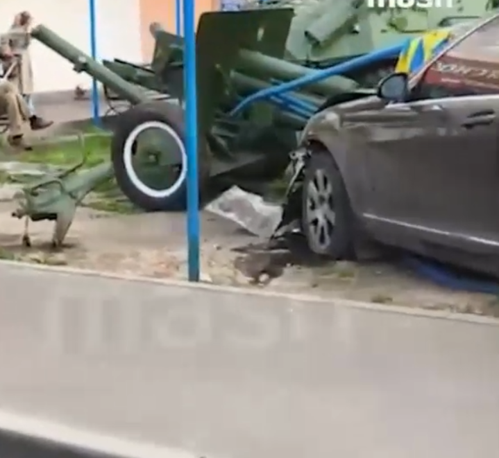 В столице России произошло крайне странное ДТП: автомобиль с африканскими номерами врезался в орудие, установленное в парке.
