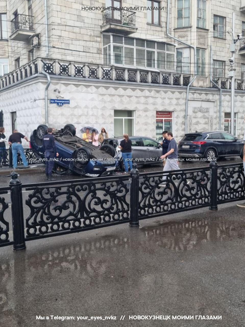 Автомобиль перевернулся на крышу в жестком ДТП в Новокузнецке