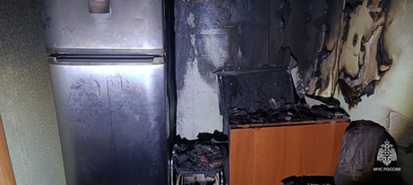 Огонь охватил домашнее имущество на кухне на площади четырех кв. м. В борьбе с возгоранием участвовали 10 огнеборцев и четыре спецмашины.