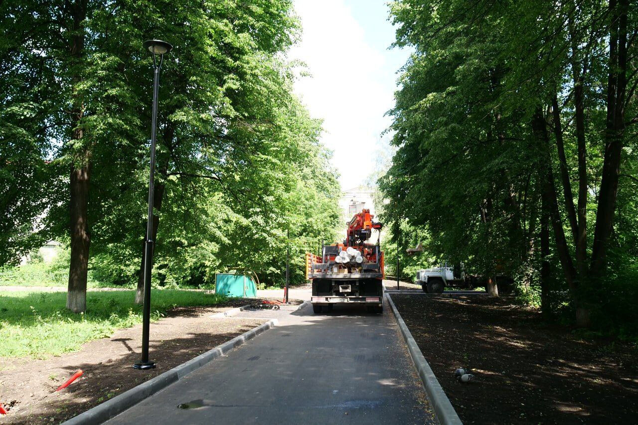 На аллее за ДК, которая ведет к набережной, специалисты обновили асфальт, в настоящее время там устанавливают освещение.