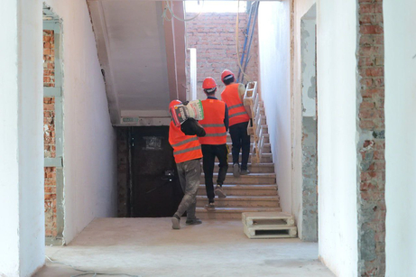 Скоро рабочие начнут заниматься чистовой отделкой, для этого на объект сейчас завозят материалы. На прилегающей территории специалисты обустраивают систему ливневой канализации и заменяют ограждение. Также скоро там появится футбольная площадка с искусственным газоном.