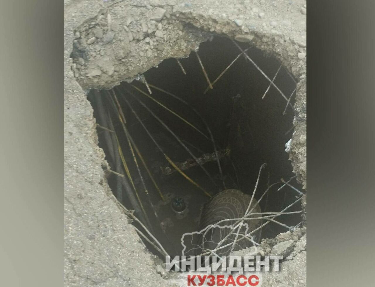 В Кемерове на тротуаре провалился асфальт, в результате чего образовалась яма.