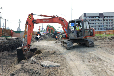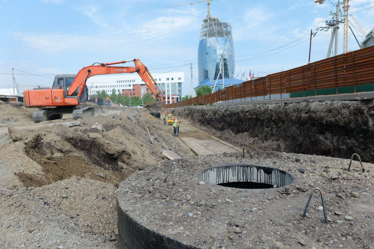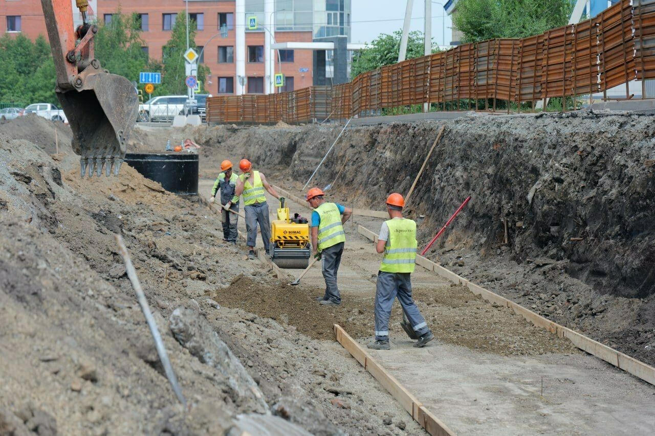 В настоящее время специалисты заменяют теплосеть, после чего начнется укладка дорожной одежды от проспекта Советского до Театрального моста. Также рабочие устраивают колодцы, прокладывают трубы, заливают фундаменты. Позже они начнут монтировать емкости.