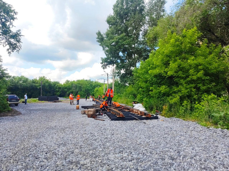 Специалисты заменили балластный слой щебня и смонтировал новые рельсы более чем на 90% на прямом участке и половину разворотного кольца. Подрядчику также предстоит построить остановочные платформы, установить бордюры, выправить и рихтовать пути.