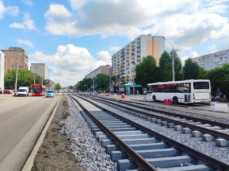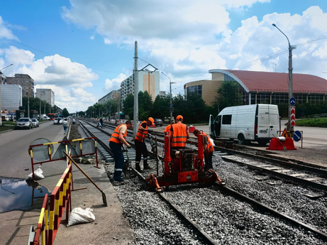 Отмечается, что в первый этап ремонта рельсов, по которым ходит трамвай №10, попали 1 600 метров одиночного пути.