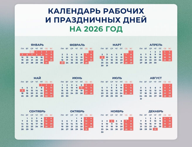 Минтруд России представил предварительный вариант календаря выходных и праздничных дней на 2026 год, согласно которому россиян ожидают 12-дневные новогодние каникулы.