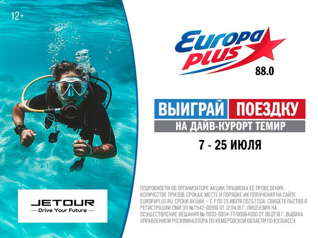 С 7 по 25 июля "Европа Плюс Кузбасс" подарит слушателям 15 путёвок на двоих на дайв-курорт "Темир".