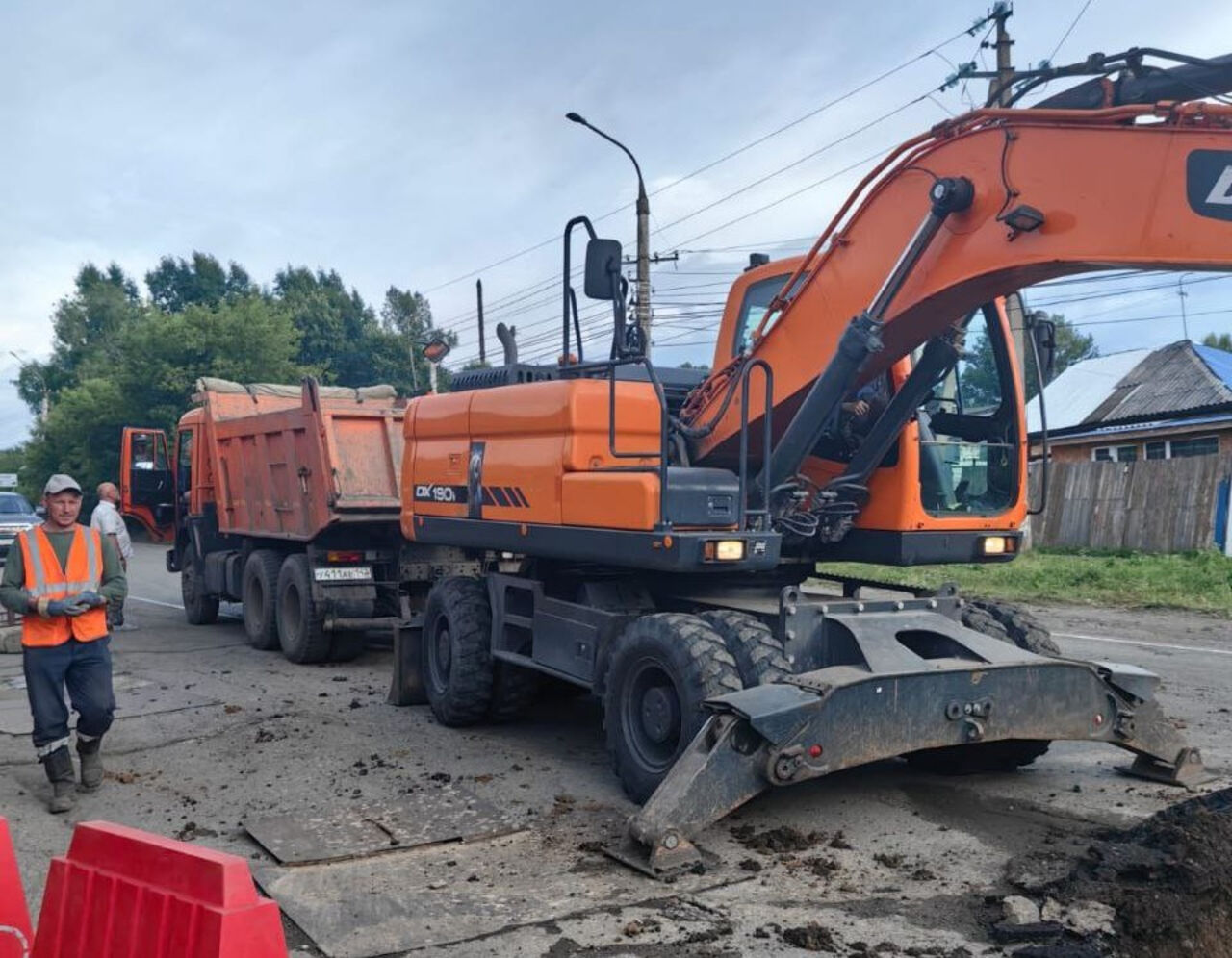 В Новокузнецке приступили к восстановительным работам на месте аварии на сети водоснабжения. Движение по дороге остается закрытым.