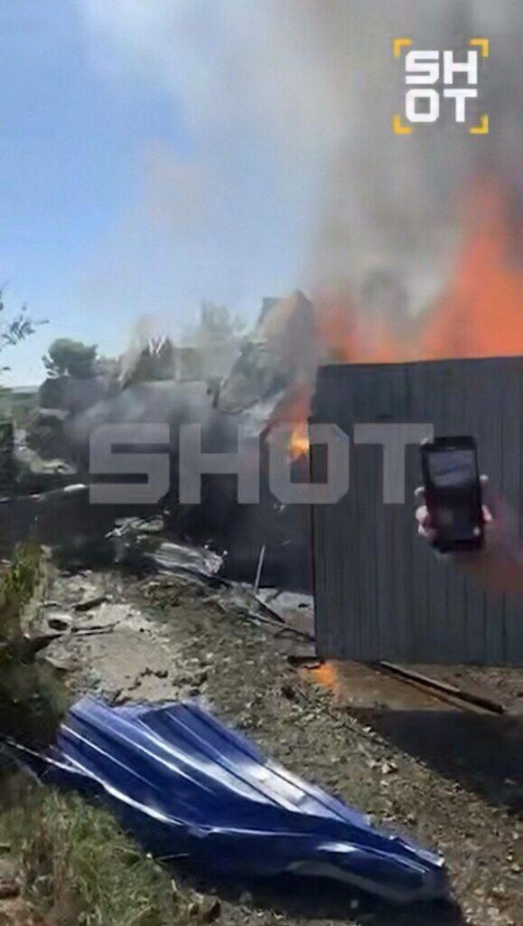 На десятисекундном видео видно обломки самолета и сильное возгорание; также очевидцы показывают разрушенный участок.