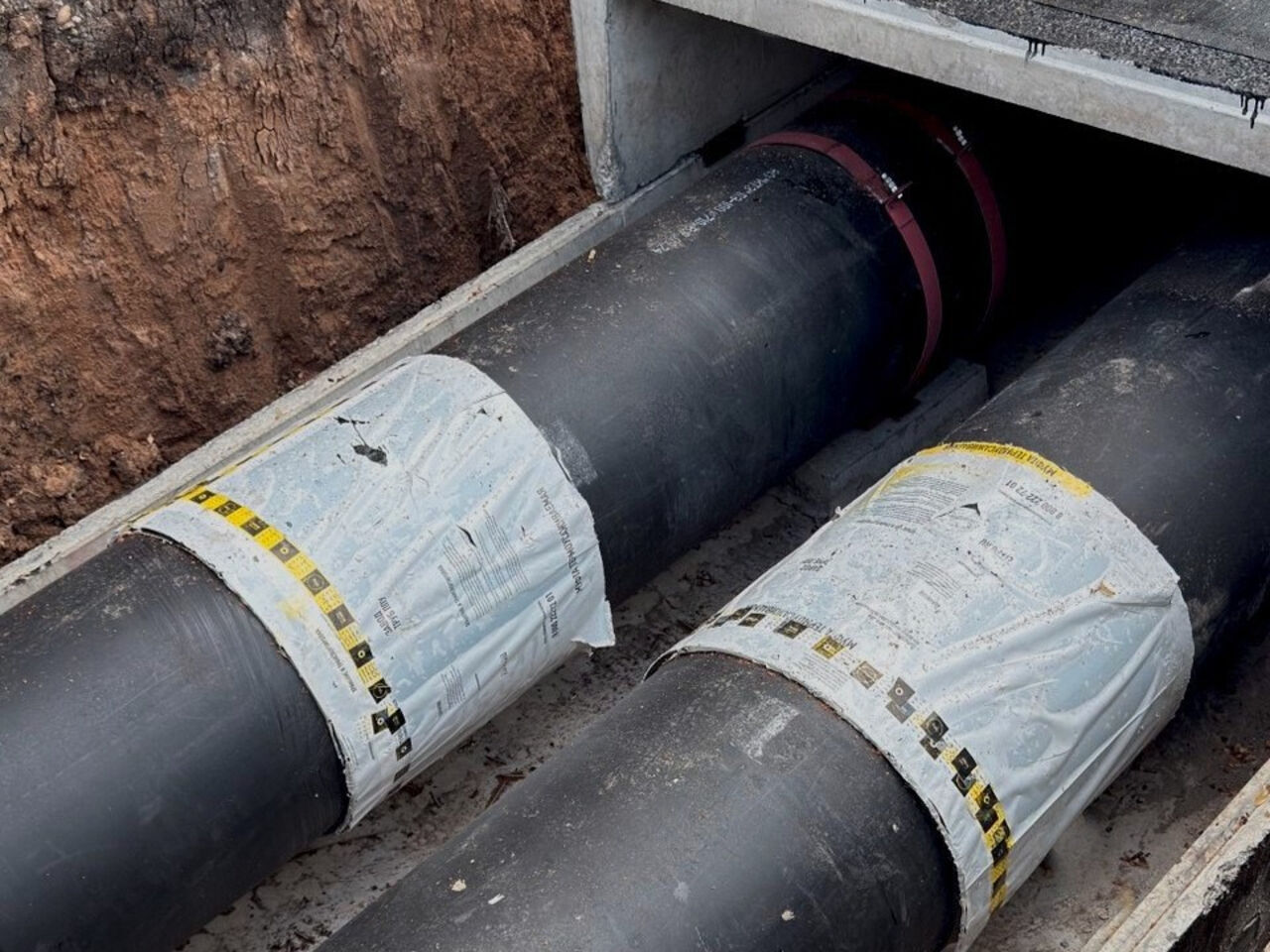 Новые трубопроводы смонтированы полностью – на 534 метрах. Сейчас рабочие монтируют проводники системы оперативного дистанционного контроля, которые зальют пенокомплектом для теплоизоляции. Сверху их закроют водонепроницаемой муфтой.