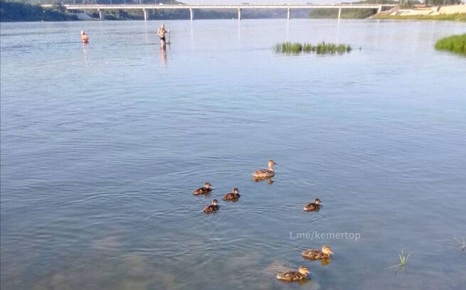 Жители города все чаще замечают уточек на Томи возле Московской площади.