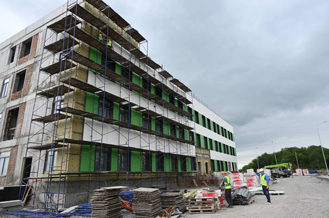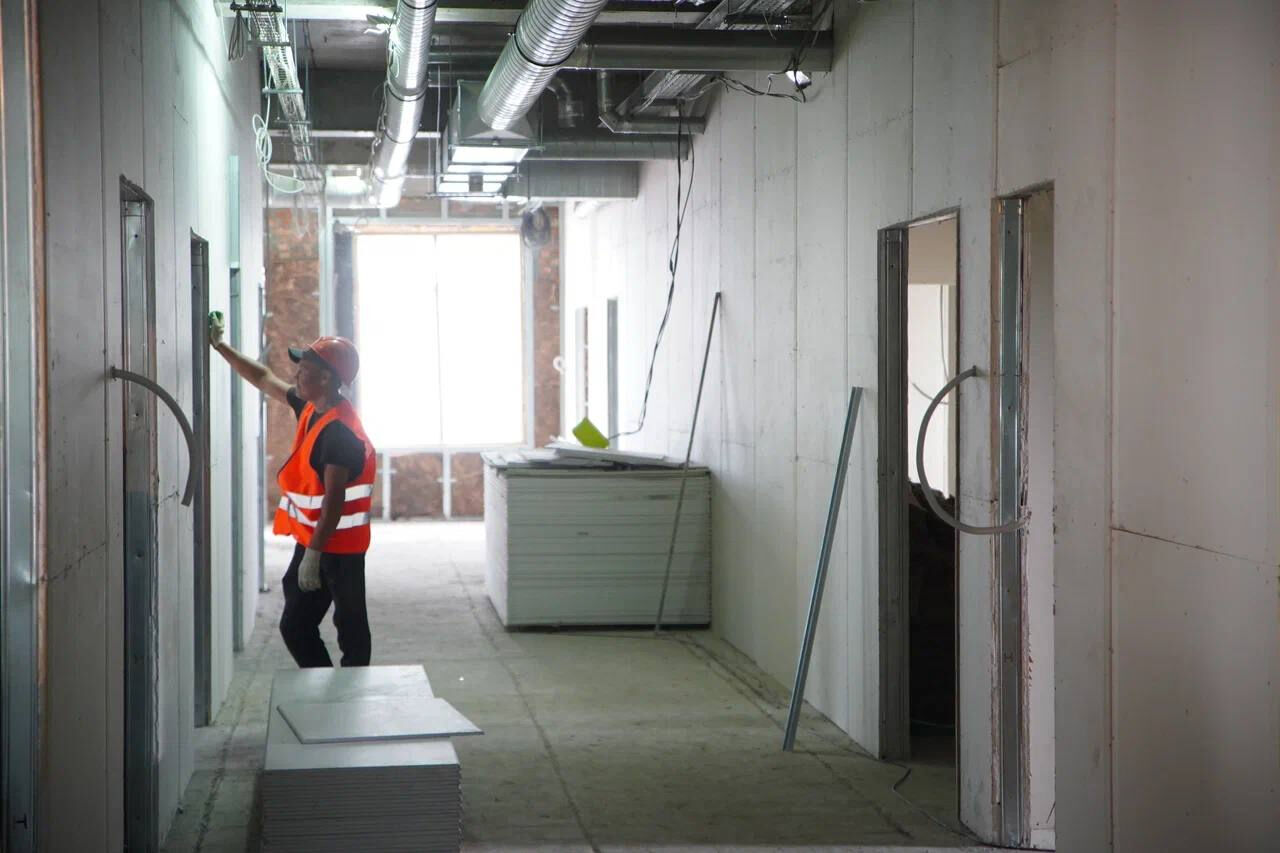 В настоящее время рабочие заливают полы, возводят фасад, делают перегородки и занимаются благоустройством территории. Сообщается, что график был специально скорректирован, чтобы успеть ввести здание эксплуатацию в этом году.
