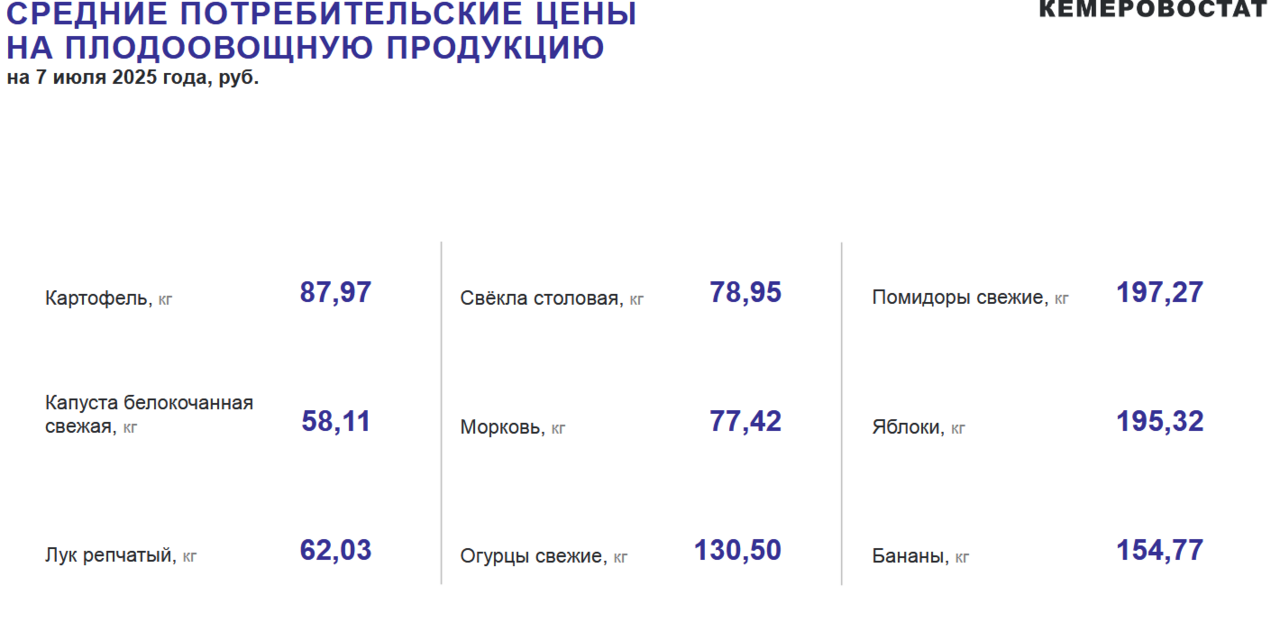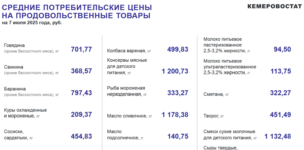 За минувшую отчетную неделю, которая завершилась 7 июля, в Кузбассе повысились цены на некоторые продукты и не только, указано в сводке Кемеровостата от 11 июля.