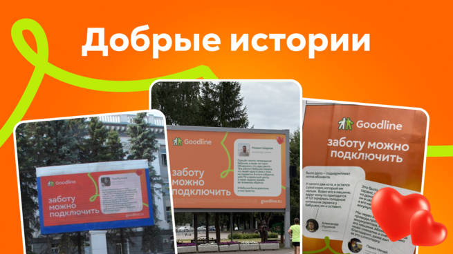 В начале июля на остановках, в лифтах и на светодиодных экранах города появились добрые истории, которыми поделились сотрудники провайдера. Это истории о том, как важно просто быть рядом, вовремя протянуть руку помощи или проявить немного больше заботы, чем того требует должностная инструкция. Каждый день сотрудники Goodline становятся свидетелями и участниками маленьких, но таких важных событий взаимопомощи и душевной теплоты.