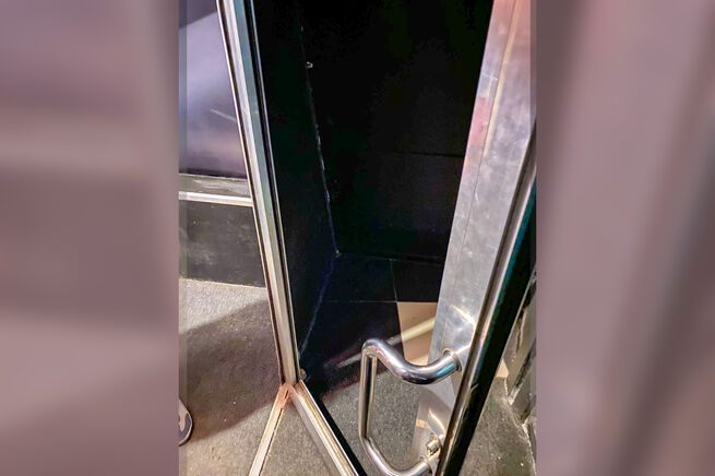 Кузбассовец не увидел никаких препятствий на своем пути и уверенно пошел к своей цели. В результате уничтожена дверь бара.