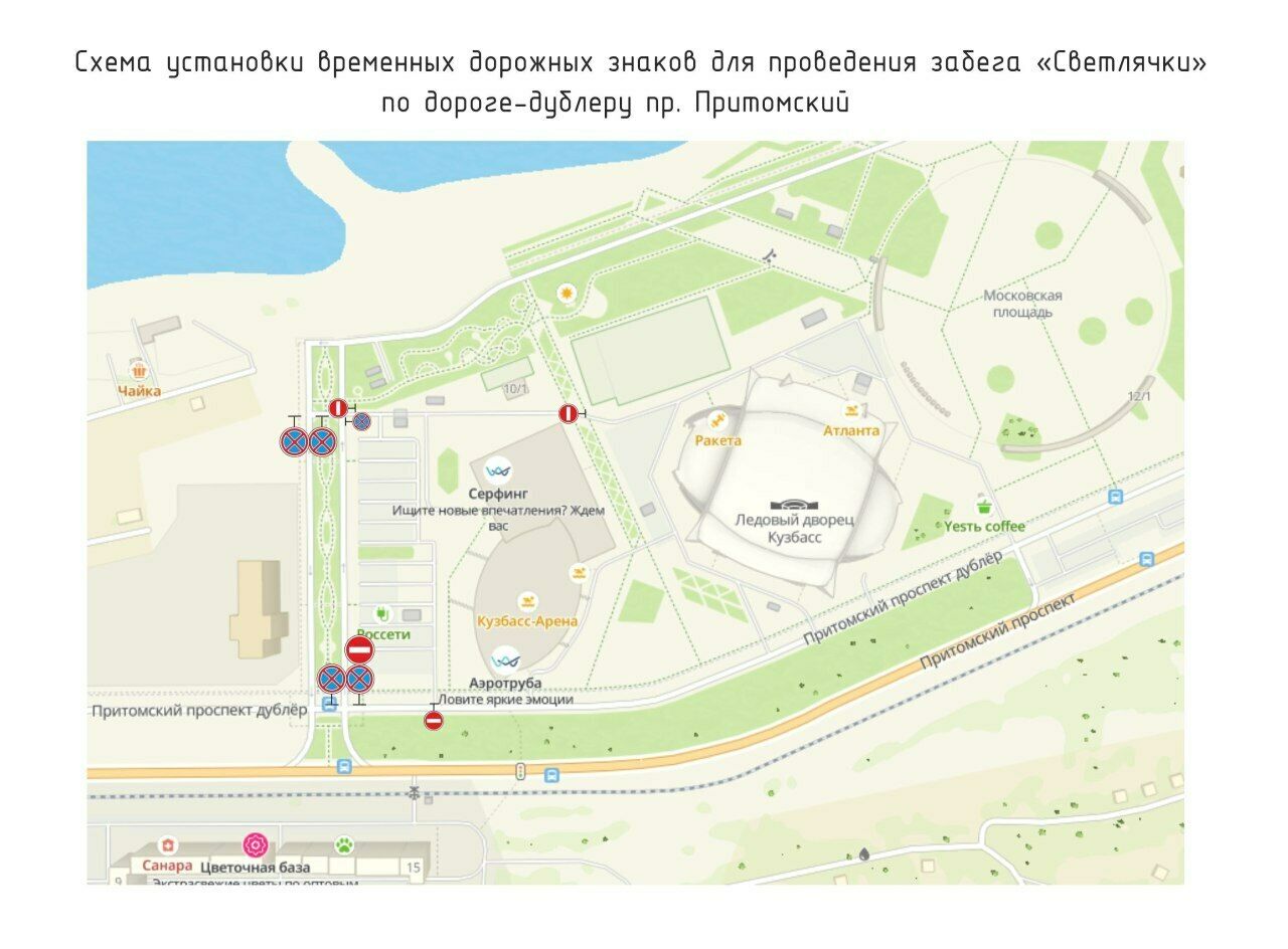 В субботу, 19 июля, с 8:00 на дороге вдоль пешеходного бульвара от дублера проспекта Притомского до набережной и при заезде к спортивному комплексу "Кузбасс – Арена" будут запрещены стоянка и остановка транспортных средств.