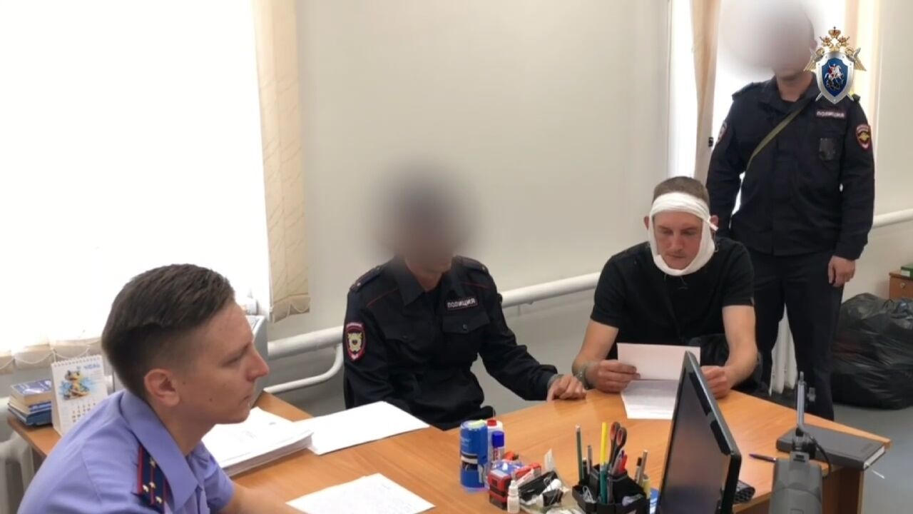 Следком также опубликовал видео, на котором показаны задержание и допрос фигуранта. На кадрах у мужчины действительно перебинтовано лицо.