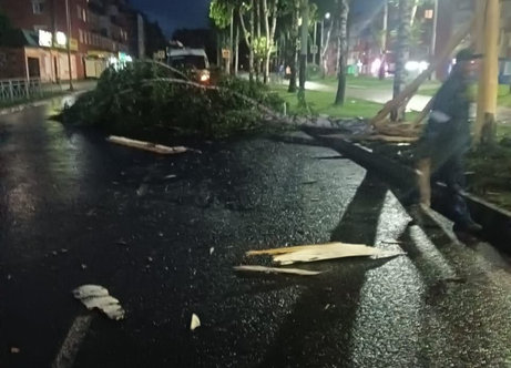 Ночью в Киселевске наблюдались ливень и ураган. В результате оказались повалены ветки и целые деревья, они лежали на дорогах и обочинах. Об этом сообщил в своем Telegram-канале мэр города Кирилл Балаганский.