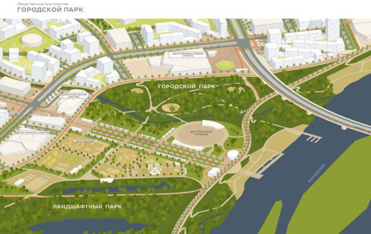 Отмечается, что городской парк будет выходить на набережную Кондомы к пляжу. Другой парк – ландшафтный – совместит маршруты с зонами для объектов ленд-арта и классические сценарии отдыха на природе.