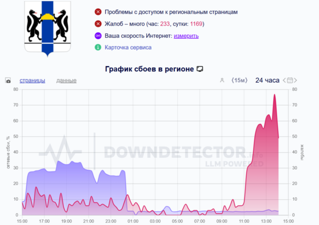 Согласно данным, предоставленным на онлайн-платформе, предназначенной для отслеживания функционала различных сайтов, за текущие сутки более 1 100 человек пожаловались на различные дефекты. На момент написания новости в час на подобную проблему пожаловались 233 жителя города.