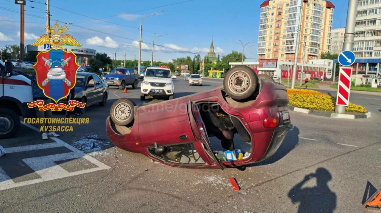В результате аварии на кольце улицы Кирова в Новокузнецке слегка пострадали два человека: разовая помощь оказана водителю и пассажиру перевернувшегося Daewoo.