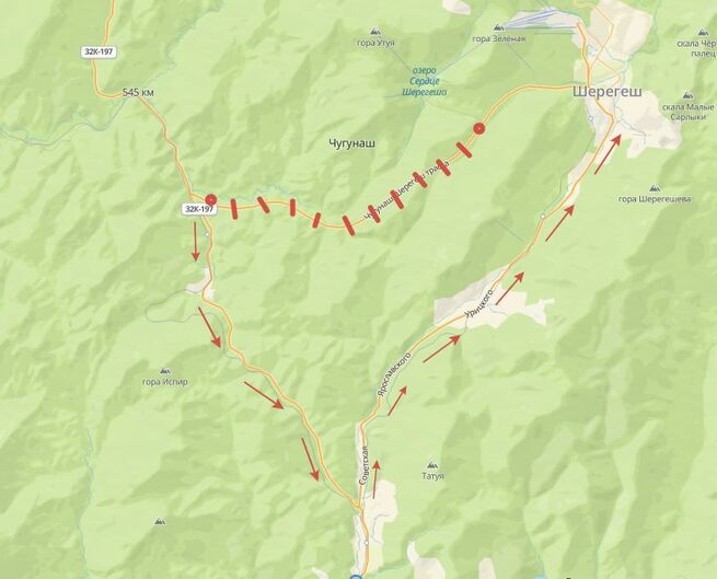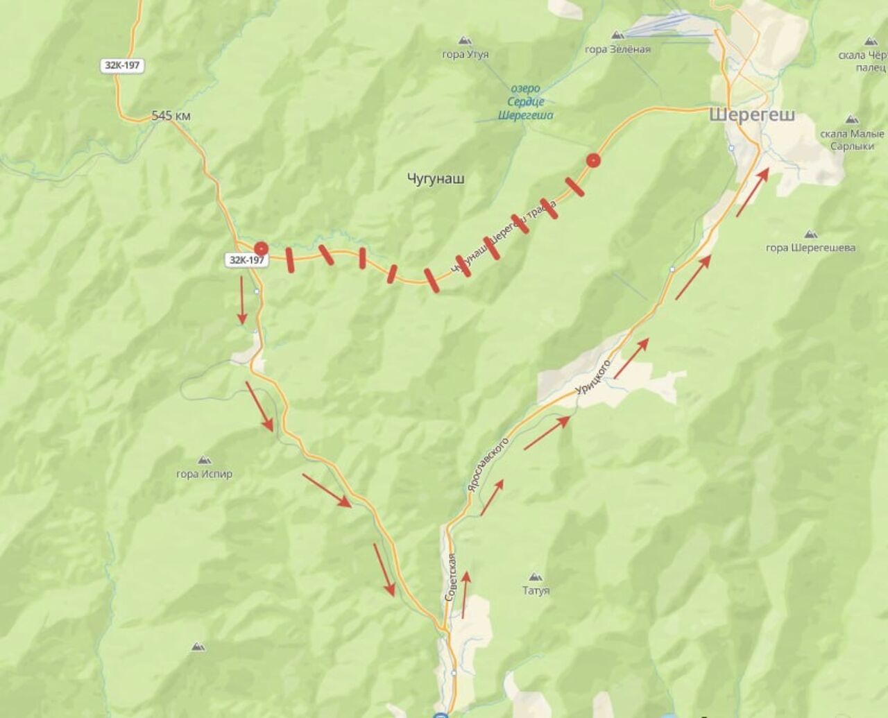 Сообщается, что 27 июля будет временно перекрыта дорога на отрезке от Сектора Е до поселка Чугунаш. Об этом сообщает дирекция курорта "Шерегеш".