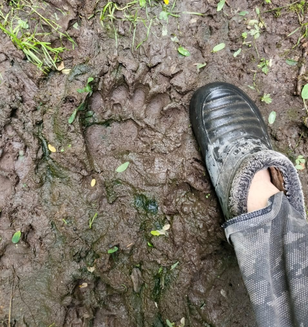 Другая жительница сообщила, что видела огромные медвежьи следы в Разведчике, и поделилась устрашающим фото.