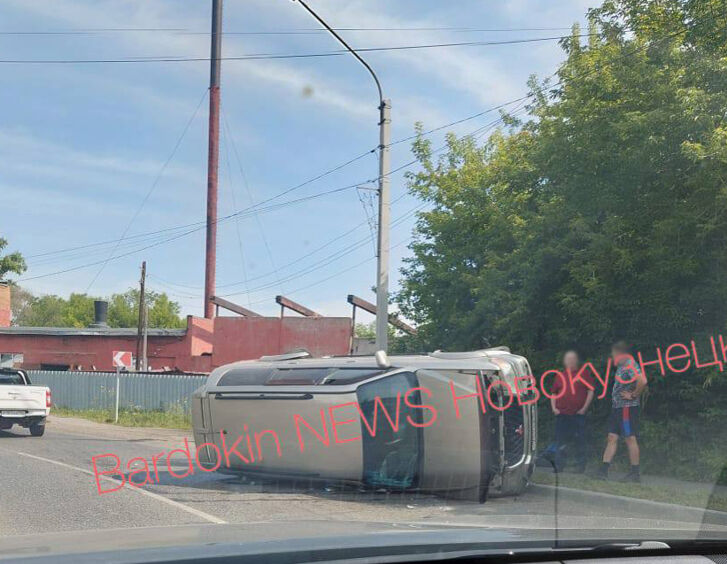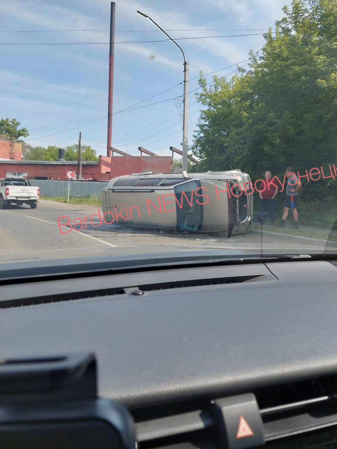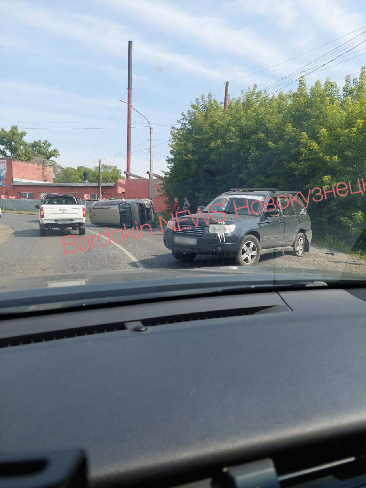 В новокузнецком поселке произошла серьезная авария, в результате которой одна машина вылетела на ограждение, а другая опрокинулась.