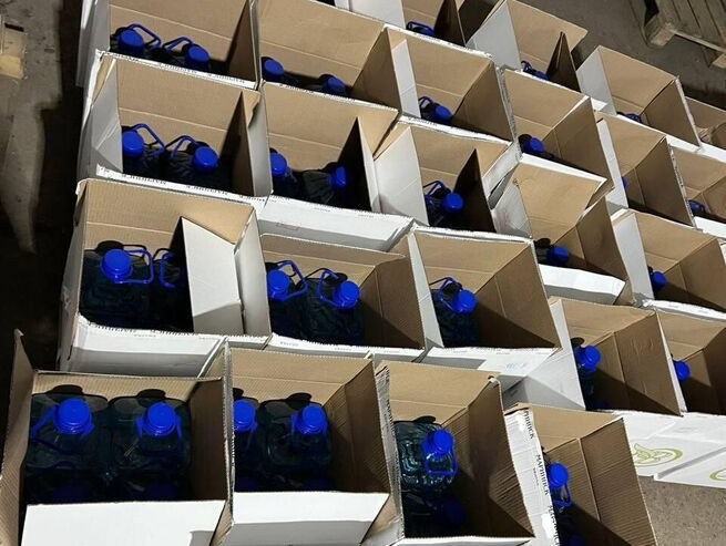 В мае правоохранители обнаружили на складе около одной тонны спиртного и нашли мужчину. Эксперт заключил, что в бутылках – спиртосодержащая жидкость неизвестного происхождения на основе этилового спирта.