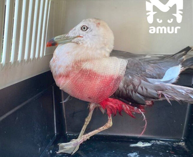 По данным Telegram-канала Amur Mash, окровавленную птицу передали в руки ветеринаров.