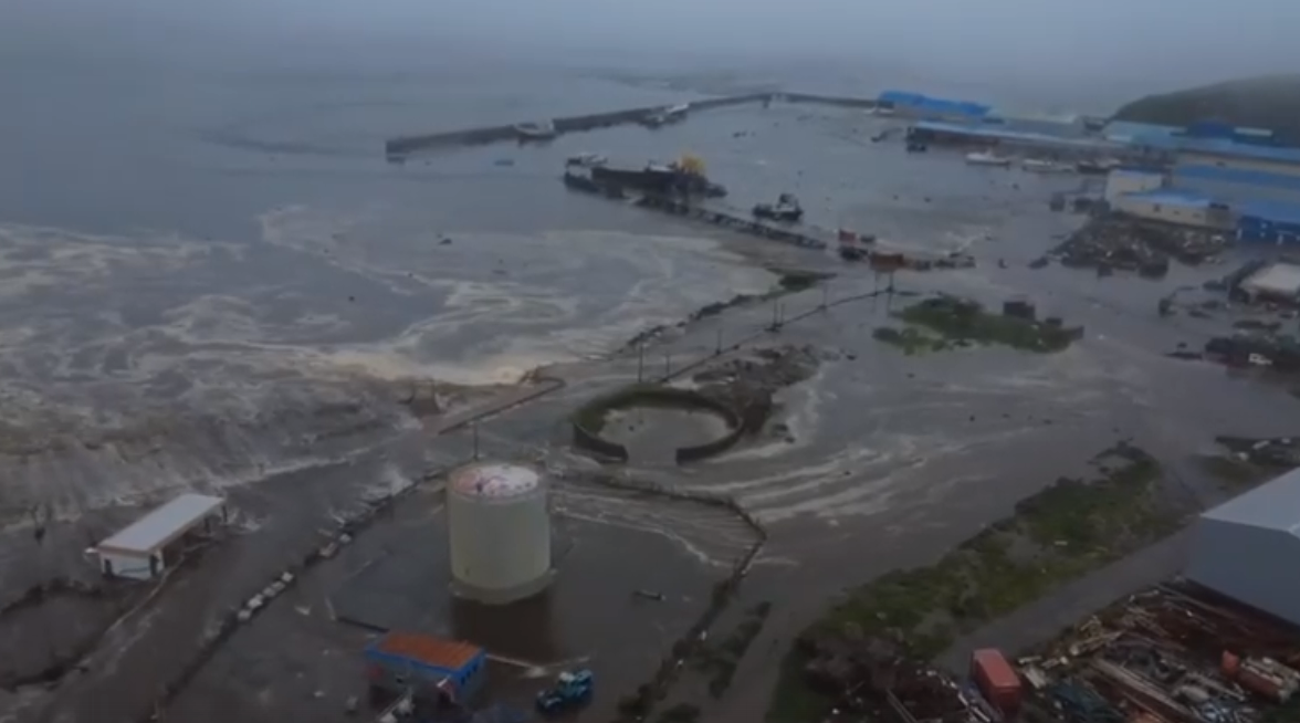 Цунами хлынуло на порт в Северо-Курильске. Граждан эвакуируют.
