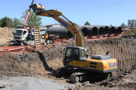 Здесь, как и на других участках, наряду со строительством проезжей части ведется прокладка инженерных коммуникаций, обустройство тротуаров и велодорожек.