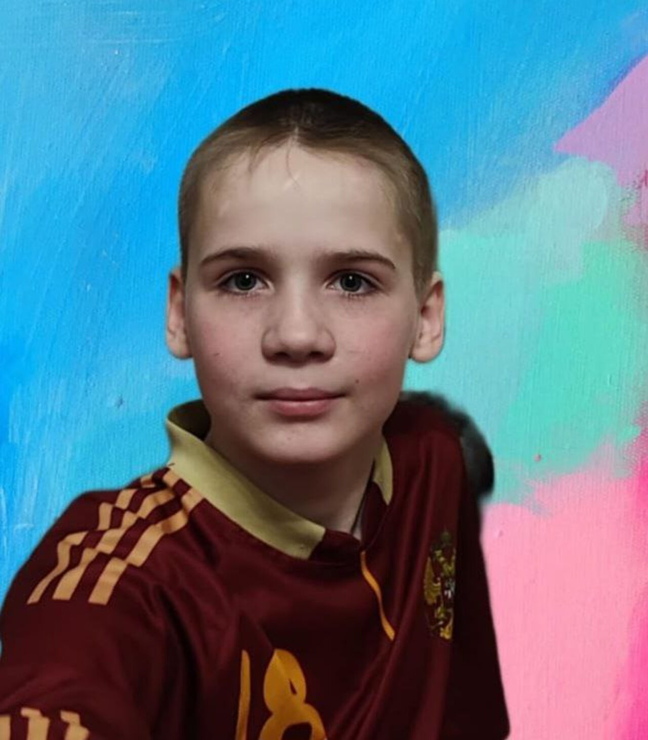 12-летний Денис Жариков ростом 163 сантиметра, у него светло-русые волосы и серо-голубые глаза. На нем черная кепка, черная футболка с капюшоном и темно-синие шорты.