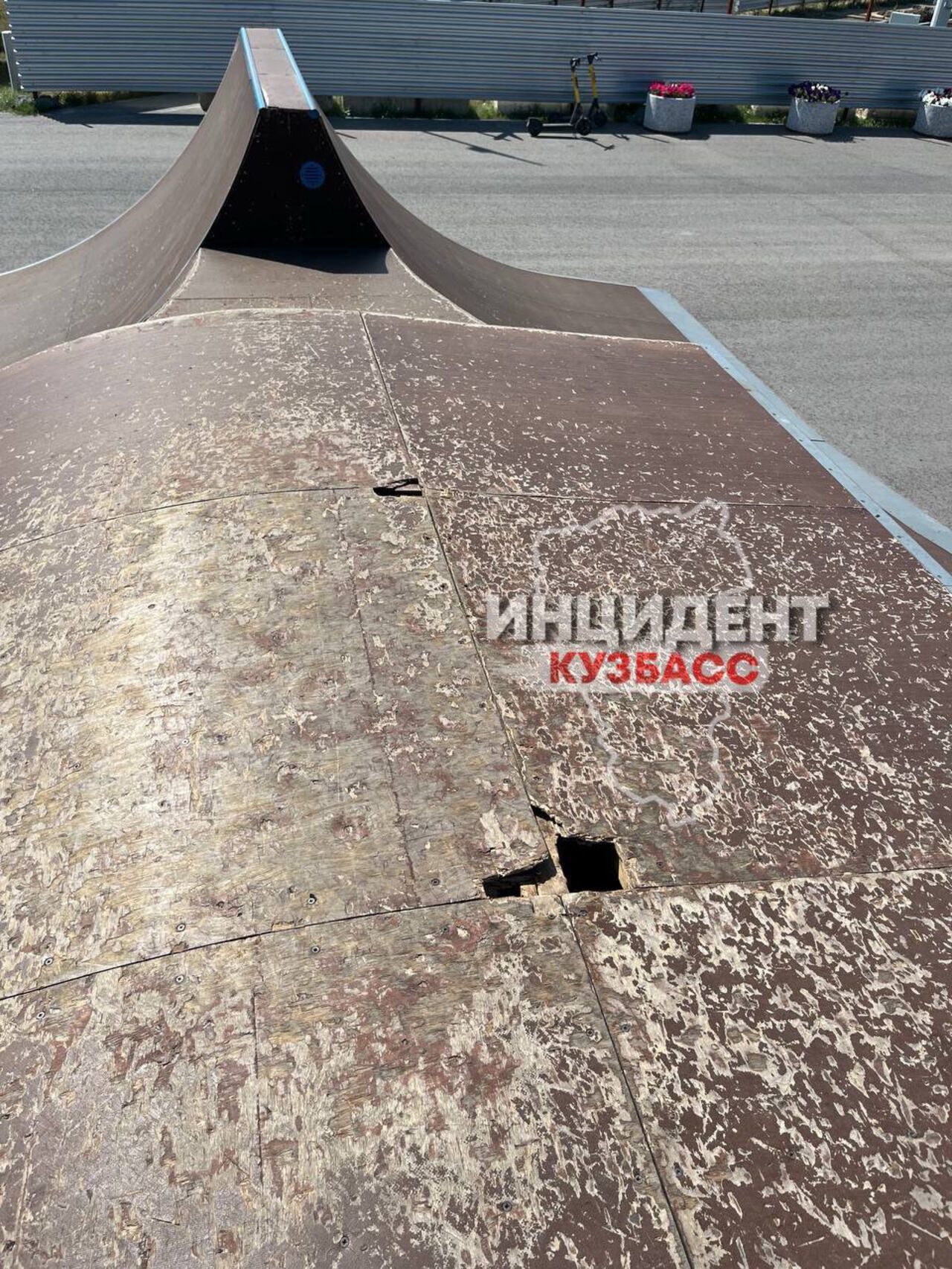 Также, как рассказал автор публикации, поломки уже привели к травмам: подросток зацепился скейтом за болт, торчащий из деревянной поверхности, и упал, прокатившись грудью по склону.